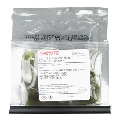 Loctite EA 9394 AERO is a two-part structural paste adhesive, which cures at room temperature and possesses excellent strength to 350°F/177°C and higher. Its thixotropic nature and excellent high temperature compressive strength also make it ideal for potting, filling and liquid shim applications.