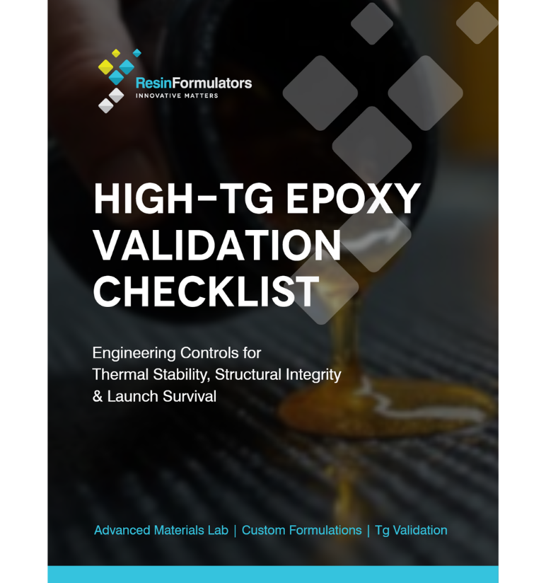 Resin Formulators provides custom formulation support and advanced in-house lab testing to validate high-temperature epoxy performance for your specific manufacturing process.