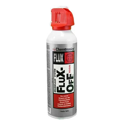 Chemtronics Flux-Off ES835BE Rosin formulation is a fast drying alcohol that quickly and completely removes R, RMA, RA and synthetic flux residue. With it's low surface tension and superior wetting properties, it removes harmful residues in tight tolerance areas.