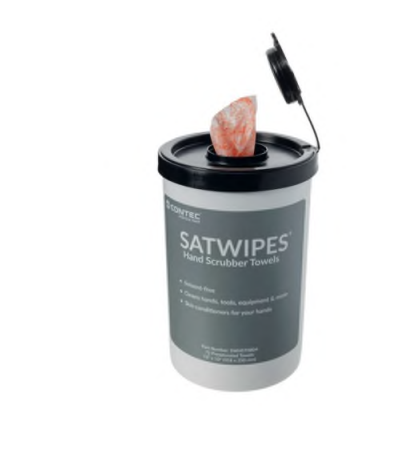 Contec SATWIPES SWHST0004 Hand Scrubber Towels are a superior value hand cleaner/towel combination. They feature a dual-textured towel with orange colored scrubber on one side for deeper, faster cleaning. Made from polypropylene material, the towels stay moist for hours allowing for multiple uses.