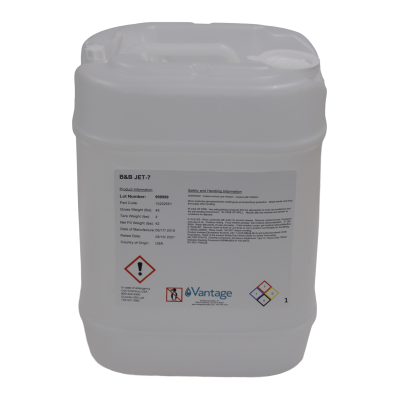 Vantage B&B JET-7 is a water based aircraft exterior cleaner. It is used to remove dirt, grime, oils, hydraulic fluid and other soils (i.e., Skydrol). It is also suitable for use in confined areas such as bilges and equipment bays.