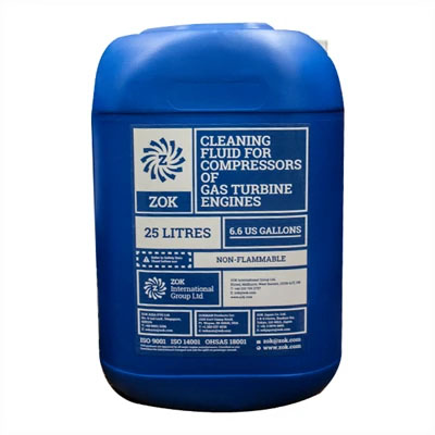 ZOK 27 is a concentrated, neutral, environmentally friendly, biodegradable water-based detergent cleaning fluid. It is specifically developed for cleaning and corrosion inhibition of gas turbine compressors.