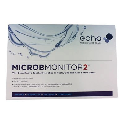 Echa Microbiology MicrobMonitor 2 is an easy to use test kit for microbial contamination with simple to read, reliable results. It is used to identify and quantify the presence of all types of microbial contamination in petroleum products in storage, distribution and use including, but not limited to aviation fuel, marine diesels, gas oils and heavy fuels, and automotive diesel and gasoline, including biofuels.